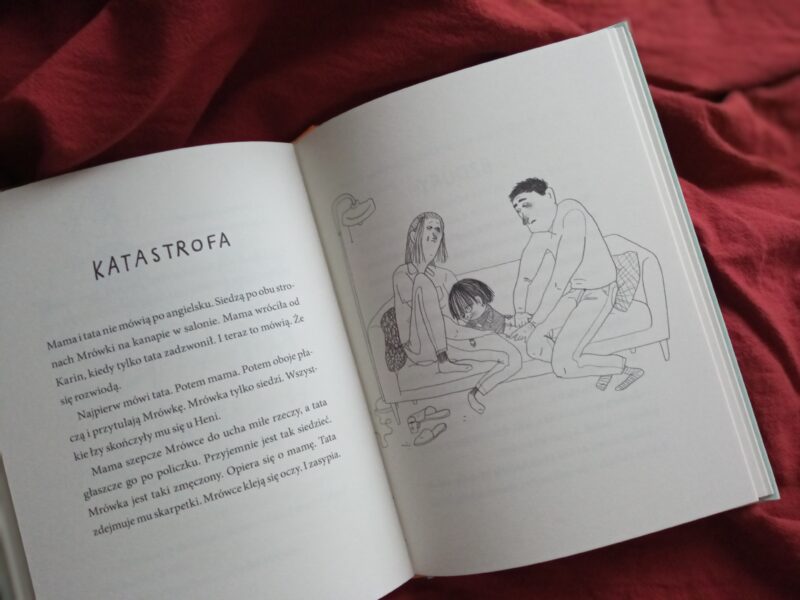 Linn Gottridsson znakomicie wplotła w życie sympatycznego, rezolutnego i wrażliwego Morgana, zwanego potocznie Mrówką, gorzkie i słodkie odsłony życia. Radość mieszała ze smutkiem, humor z powagą, bezpośredniość z wrażliwością. Doskonale wyczuwała potrzeby młodych odbiorców, przeplatała różnorodne ciekawe incydenty z powagą niepokoju o to, co działo się między rodzicami głównego bohatera. Dorośli za wszelką cenę starali się nie wciągać Mrówki w sprawy i relacje między nimi, sprzeczali się po angielsku, a jednak dziecko intuicyjnie wyczuwało, że coś zdecydowanie było nie tak. Odbierało negatywne emocje i dostrzegało ich eskalację. Autorka z wyczuciem wplotła niełatwą tematykę w cykl zabaw Morgana. Przekonująco ukazała, że życie toczy się dalej, bez względu na to, co w danym momencie się przeżywa, kolejny dzień przynosi nowe możliwości, interesujące wyzwania i dostarcza wielu powodów do radości.