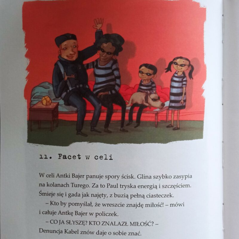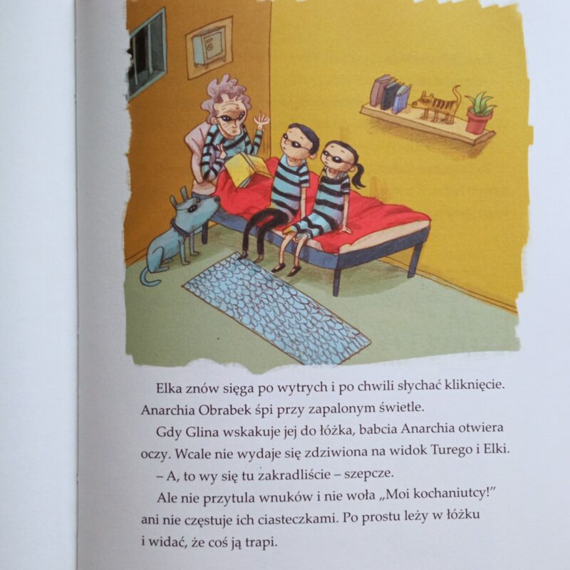 Warto podkreślić mocny atut książki, jakim były skojarzeniowe figle z imionami. Tata Zbiro, mama Cela, córka Kryminelka, syn Ture, babcia Anarchia, pies Glina. A ponadto, sąsiad Paul Icjant, więźniarka Antka Bajer i osadzona Denuncja Kabel. Tłumaczenie w znakomitym wydaniu. Na fantastyczny odbiór przygód Obrabków wpływały również ciekawe i łobuzerskie ilustracje. Jeśli szukacie sprawdzonego prezentu dla uczniów pierwszych klas szkoły podstawowej, zwróćcie uwagę na tę szwedzką serię, jestem przekonana, że się spodoba. Mocno wymyka się schematom poprawności fabularnej i postaw bohaterów, ale właśnie w tym tkwi jej urok.