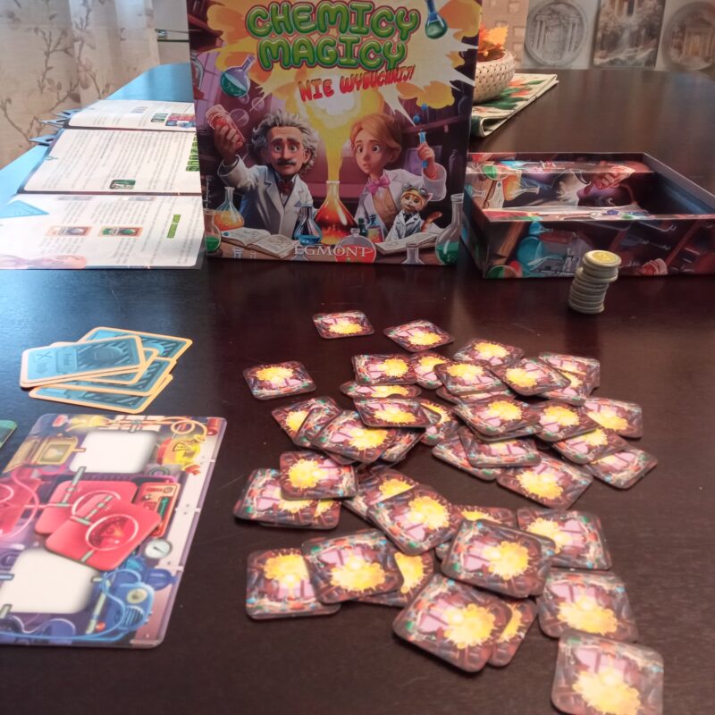 Jako nauka chemia nie należy do łatwych, potrzeba trochę czasu, aby się z nią oswoić i zaprzyjaźnić, podobnie jak z instrukcją gry. Nie wszystko początkowo wydawało się jasno i przejrzyście wytłumaczone, lecz w trakcie rozgrywek rozpracowywaliśmy porządek rzeczy i już odpowiednio dobieraliśmy składniki wytycznych. Trochę namieszaliśmy w żetonach mocy i złota, w kartach awaryjnych, ale w końcu udało się nam je opanować i przypisać funkcjom.